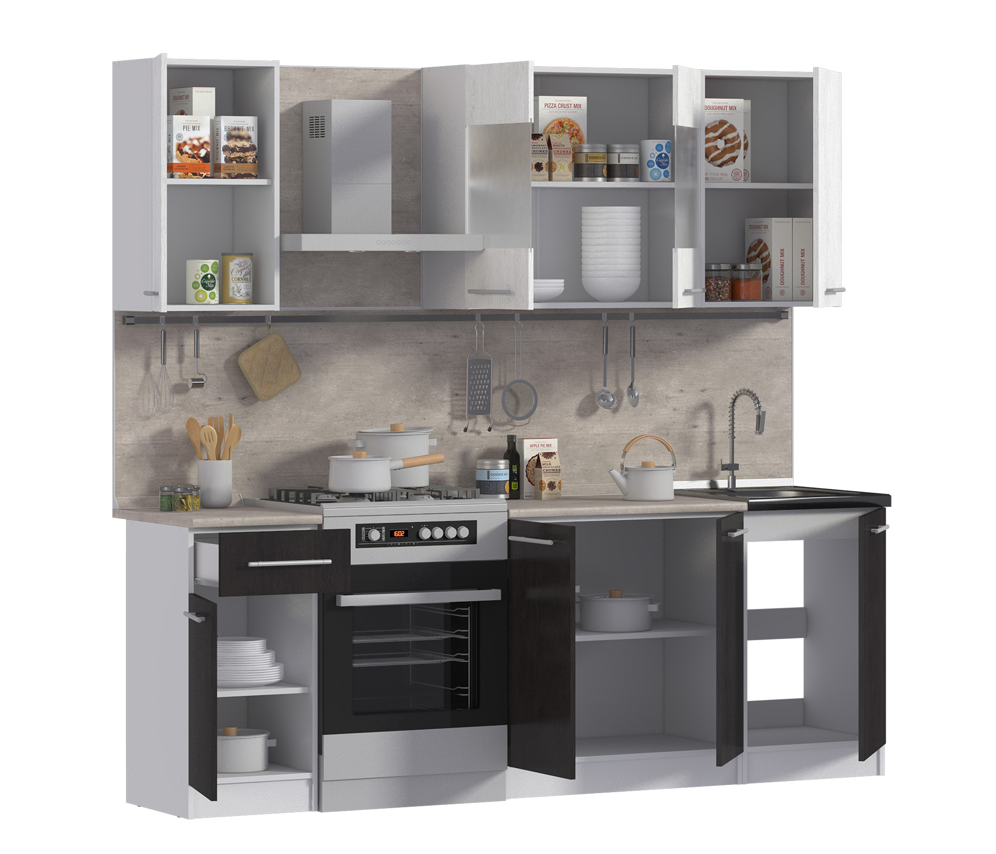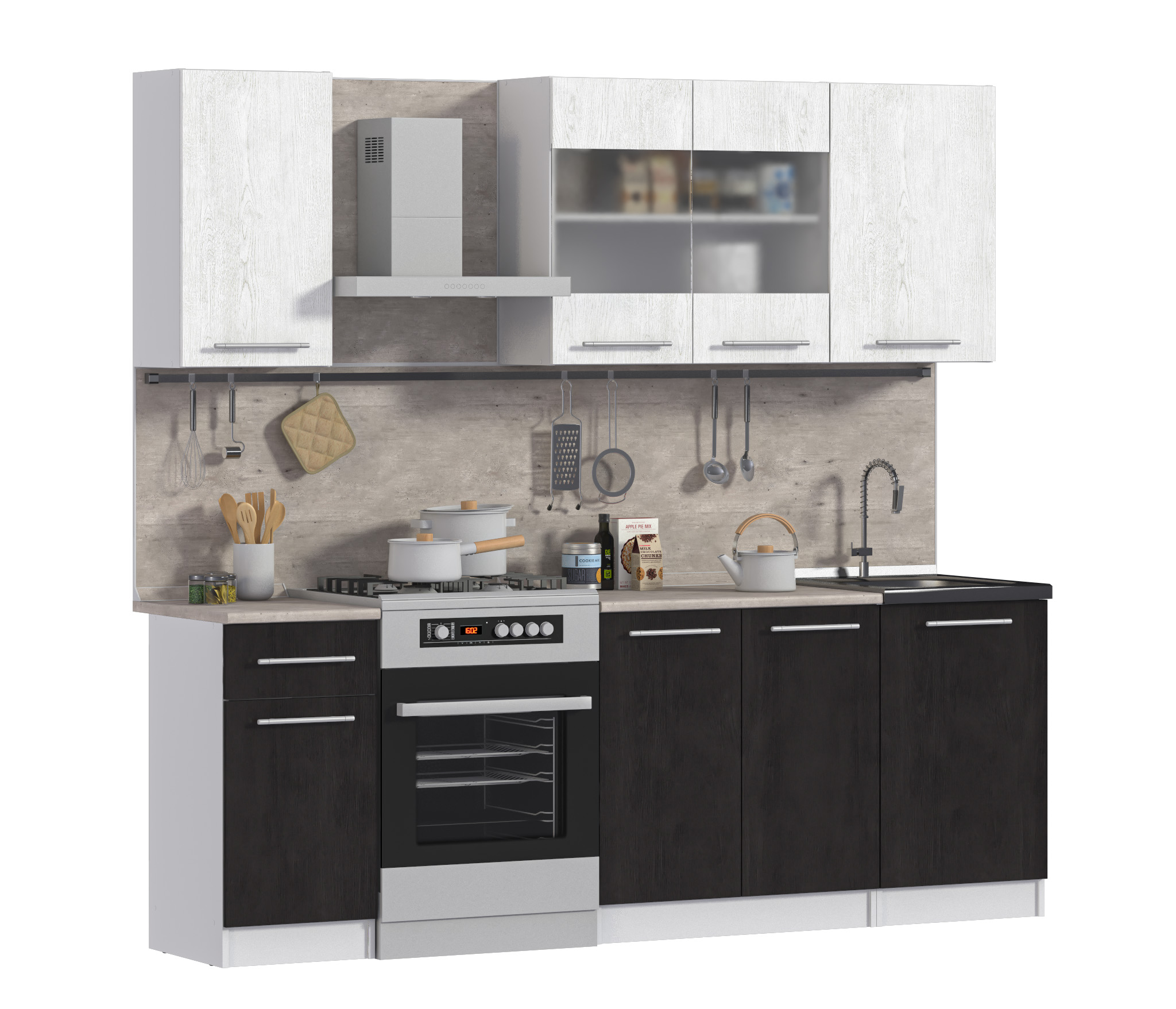 Кухонный гарнитур Элен Белый/Дуб Планк,Дуб Мажор/МетрополитанR5 1,7 м (Белый/Дуб Планк,Дуб Мажор)
