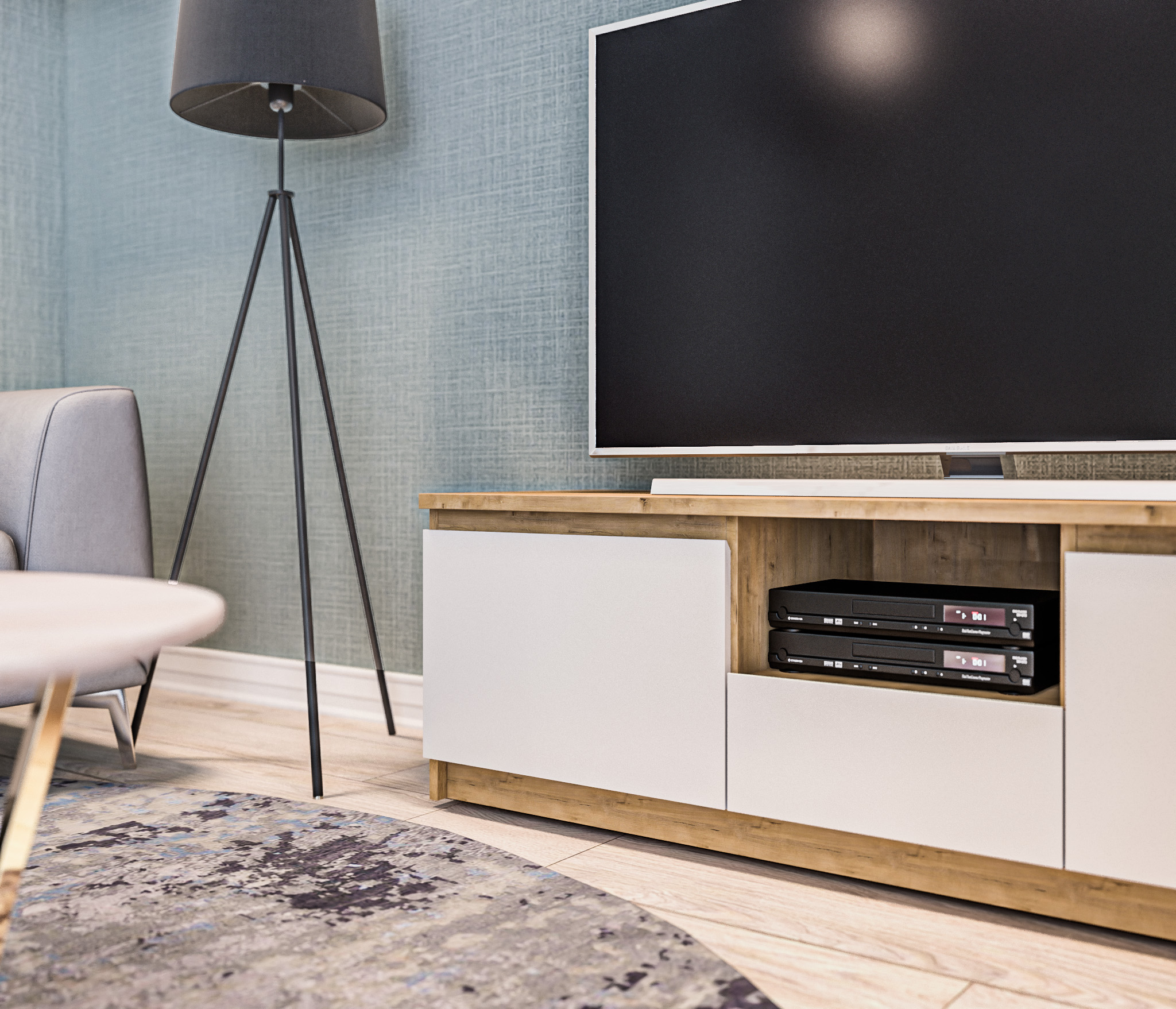 СБ-2253 Тумба под телевизор Дуб Бунратти/Белый глянец