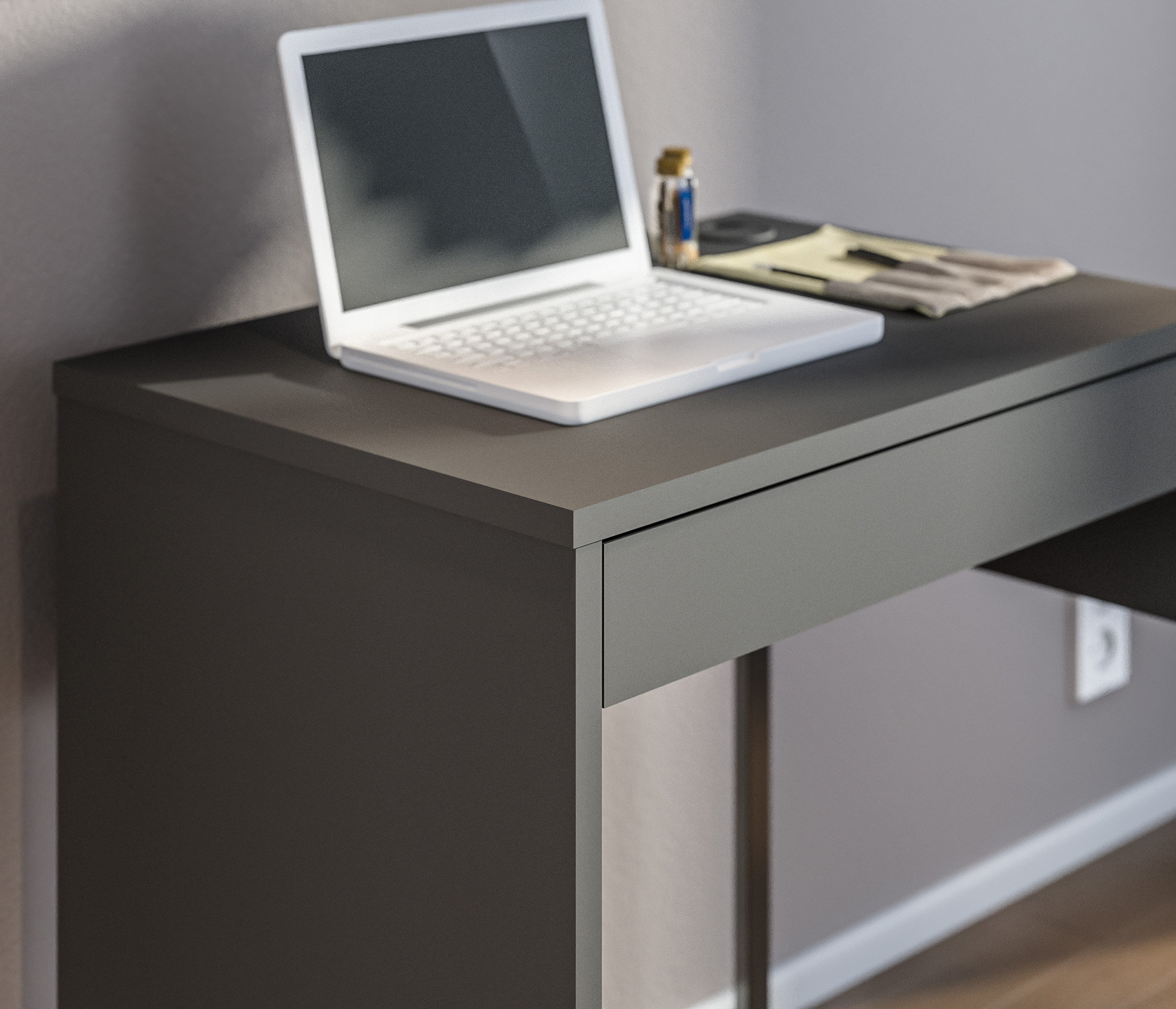 Стол изготовлен из высококачественного ЛДСП цвета Диамант серый, этот материал обеспечивает прочность и долговечность стола, а также делает его легким в уходе.