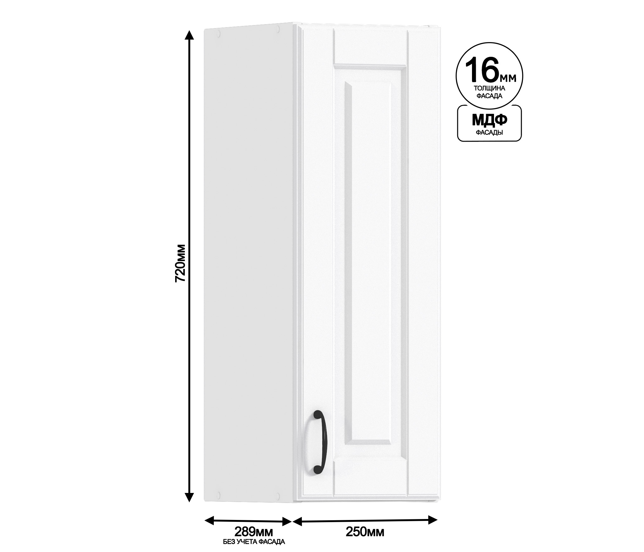 Регина шкаф навесной 1 дв 25х72 см (Серый матовый)