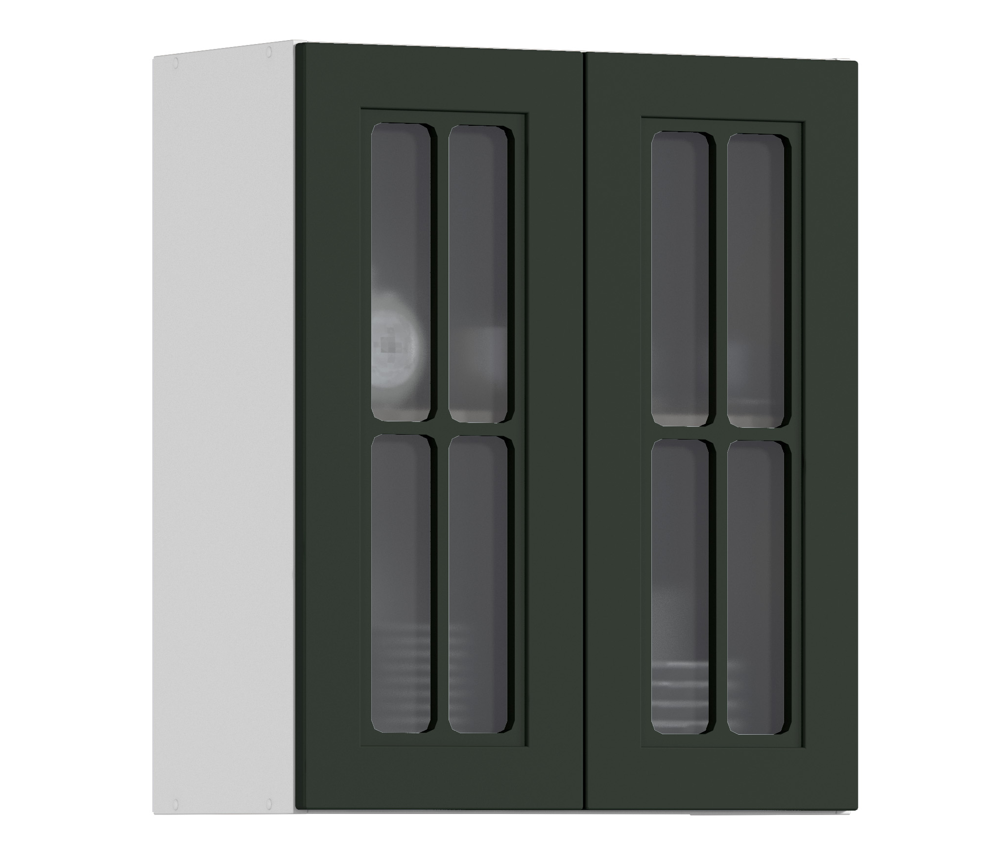 MODERN шкаф навесной со стеклом 2 дв 60х72 см (Белый/Олива)