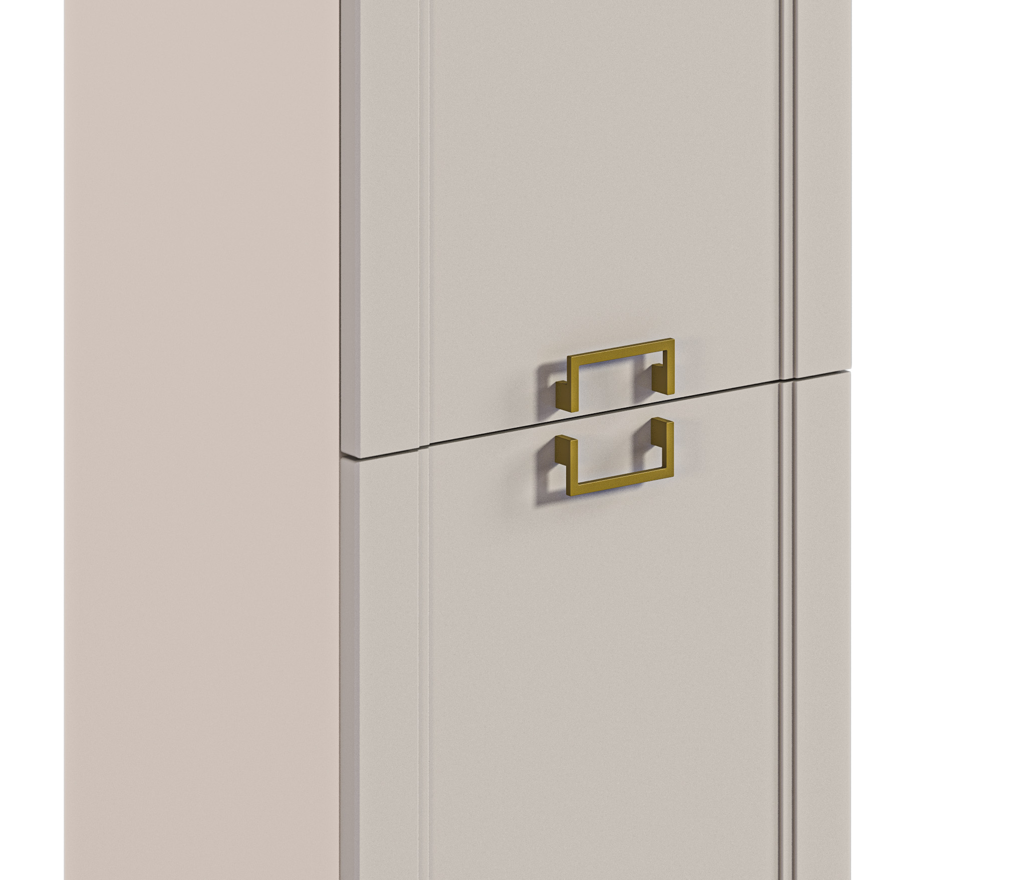 Золотистые ручки и ножки коллекции "Ассоль" добавляют неповторимый шик и изысканность, завершая образ тонким и стильным блеском. Эти акценты создают атмосферу роскоши и утонченности. Они играют роль визуального украшения, дополняя общий вид мебели и придавая ей особый шарм и элегантность.